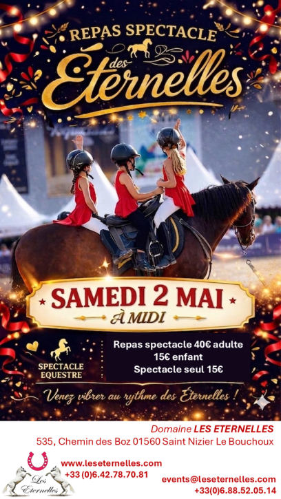 Les Eternelles, c'est également une association loi 1901 créée aussi en 2013 dont l’activité principale est le spectacle équestre. Elle propose des spectacles à la carte, thématiques, à domicile ou à l’extérieur. De la simple fête d’anniversaire au spectacle complet, tout est possible.