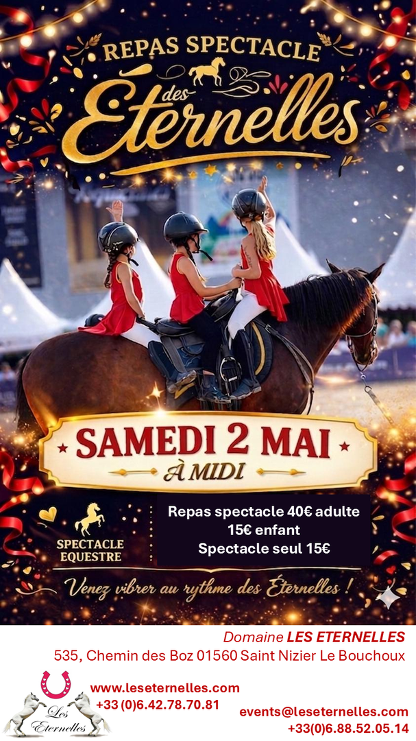 On vous emmène dans l’univers Circassien pour l’occasion, avec comme tête d’affiche Écurie du Cerneux - Marie & Charly, Spectacle Équestre !